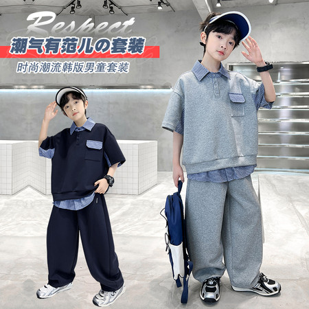 爆版熊&B816-女童宠物狗假两件拉条套装